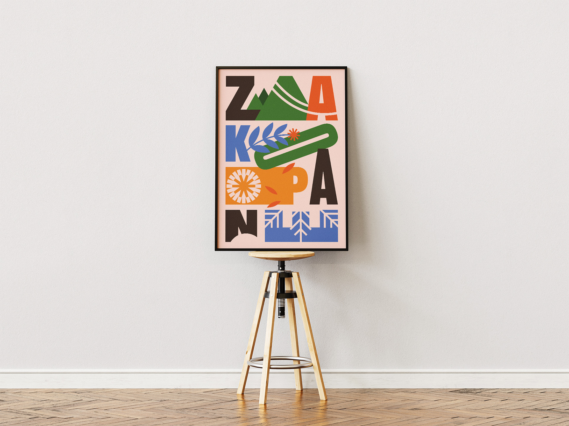 A poster promoting the city of Zakopane. In a nationwide competition in 2023, it received an honorable mention from Lidia Rosińska-Podleśny, Director of the Municipal Art Gallery